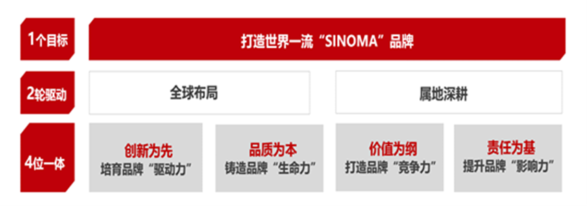 )是我国建材行业“走出去”的排头兵,作为集团三大业务板块之一“工程及技术服务”的核心成员企业,中国中材国际工程股份有限公司(简称“中材国际”“公司”)是全球最大的水泥技术装备工程系统集成服务商,中国工业大奖获奖企业。自成立以来,中材国际坚持走国际化发展之路,按照国际化运营和品牌建设同部署、同推进,以国际工程为载体,推动中国技术、中国标准、中国制造和中国品牌走向世界,“SINOMA”品牌成为国际建材工程技术装备市场最具影响力的品牌之一。 02 主要做法 (一)坚持战略引领,强化品牌国际化顶层设计 中材国际成立之初,就深刻认识到品牌建设的重要意义,强调完善国际品牌战略是建设一流企业的必然选择,“SINOMA”品牌应运而生,品牌标识犹如海上磅礴升起的太阳,代表着振奋向上的精神力量,强烈表达出“执着、团结、领先”的精神内核。 二十余年来,中材国际以建设“材料工业世界一流服务商”为愿景,不断丰富“SINOMA”品牌内涵,逐步形成以打造世界一流“SINOMA”品牌为目标,坚持“全球布局”和“属地深耕”双轮驱动,建设创新、品质、价值、责任“四位一体”的“124”品牌国际化发展体系,通过健全品牌组织机构、加大品牌宣传、深化国际合作等多措并举,持续提升品牌知名度和影响力。 中材国际“124”品牌国际化发展体系 (二)坚持双轮驱动,夯实品牌国际化发展根基 1.强化全球布局,加速品牌国际化进程 2002年,中材国际积极响应国家“走出去”号召,大规模实施国际化战略。通过整合国内水泥技术装备工程服务优质资源,建立贯通EPC全产业链的“一站式”业务模式,以沙特市场为突破口,全面进军全球市场。截至2022年,公司在85个国家承建293条水泥生产线,海外合同累计超过3000亿。2022年,公司海外业务收入166亿,较2005年增长15倍,国际化指数超40%,国际化水平和影响力显著提升。 2008年6月23日,习近平同志在沙特接见公司现场管理人员时提出,“重质量、讲信誉,争创中国品牌,树立中国形象。”同年,公司的国际市场份额首次超越欧洲主要竞争对手,并连续15年蝉联世界第一,彻底改写了世界水泥工程市场的竞争格局。SINOMA的旗帜在 “一带一路”沿线国家,在世界各地高高飘扬,成为享誉全球的知名品牌。 2.深化属地深耕,打造品牌本土化标杆 中材国际充分发挥“走出去”过程中积累的技术、品牌及管理优势,结合所在国市场需求,在有条件、有潜力的区域“深耕细作”,一国一策谋求可持续发展。按照“223N”属地经营发展模式,立足国内与属地2种资源、2个市场,深化发展多元工程、属地服务、产业投资“3”种业态,着力打造“N”个属地大利润平台。截至2022年,公司在全球设有36家属地化机构,在电力、矿业、基建等行业累计新签多元工程合同290亿;境外在手运维生产线45条,在手合同额115亿,水泥运维年产能超过7000万吨;通过新建、合资、并购等多种方式,实施境外产业投资15项,投资总额13亿,完成全球金属彩石瓦屋面系统发展规划,成功斩获2022年非洲住房大奖。顺利建成尼日利亚、埃及、伊拉克3大亿元利润平台,尼日利亚公司获评中尼建交50周年荣誉企业、优秀在尼中资企业。 (三)坚持四位一体,丰富品牌国际化发展内涵 1.创新为先,培育SINOMA品牌“驱动力” 中材国际始终坚持创新是企业发展和品牌建设的根本动力,持续推动创新链与产业链深度融合,有效构建“研产用”一体化创新体系,高水平科研成果不断显现。超低排放及能效指标全球领先,自主研发BIM数字化平台,实现全生命周期、全要素数字化管理;联合发布智能工厂、智慧矿山建设指南,研发建设智能工厂100余座,劳动生产率提升50%以上。先后发布国际、国家及行业标准231项,拥有专利2323项,获得国家科技进步奖11项,所属企业荣获科改示范企业、国家技术创新示范企业、制造业单项冠军示范企业等诸多荣誉,为打造世界一流品牌奠定了坚实的技术基础。 同时,中材国际持续推动以SINOMA为标志的中国标准、中国装备和中国技术走向世界。其中越南福山日产5000吨水泥生产线是第一条采用100%国产化SINOMA装备的海外水泥工程项目;阿联酋UCC日产万吨水泥生产线是中国首条在海外以总承包方式承建的具有中国自主知识产权的日产万吨水泥熟料生产线,打破了欧洲企业长期主导国际大规模水泥工程建设市场的局面,全面实现关键装备从成套进口、全面国产化到整线出口的重大飞跃。 阿联酋UCC日产万吨水泥生产线 2.品质为本,铸造SINOMA品牌“生命力” 中材国际始终秉承“做精品工程,塑全球品牌”理念,恪守精益求精的工匠精神,在茫茫的戈壁荒漠、在严寒的雪域高原、在酷热的红海之滨,建设了一座座高品质的现代化工厂,架起了一座座友谊的桥梁,多次荣获中国建设工程鲁班奖、国家优质工程金奖等国内外最高奖项。其中,埃及GOE6*6000t/d项目是世界水泥工业史上迄今在同一地点、同时同步建设的最大规模的水泥生产线,被誉为水泥王国的“金字塔”,同时斩获鲁班奖和国家优质工程金奖。保加利亚Denvy 4000t/d水泥生产线荣获保加利亚最高建筑奖和鲁班奖,是行业内第一个荣获国际国内双项最高荣誉的项目。匈牙利NOSTRA 2500t/d水泥生产线被当地媒体称为“世界最美丽的水泥厂”。埃及苏伊士运河大桥项目是目前世界上跨度最大的双翼平旋铁路桥。尼日利亚Dangote炼油
