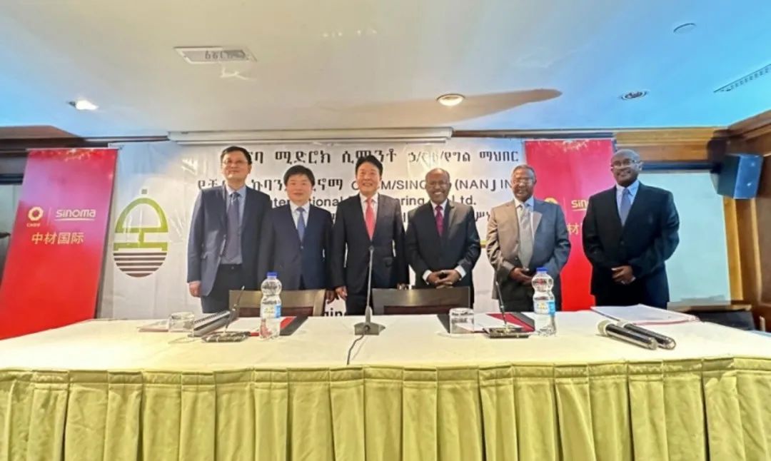 总院建设世界一流科技型企业的战略指引下,在经营提升、创新领先、改革攻坚等各方面取得明显突破,有效发挥了1+1>2的重组整合效应,经营业绩稳步提升,收入、利润同比分别增长25.82%和45.96%,资产负债率同比降低1.46个百分点,全员劳动生产率同比增长2.81万元/人,为实现“十四五”规划奠定坚实基础。 5 中材国际(南京)签署埃塞俄比亚德巴水泥二线总承包合同 近日,集团所属中材国际(南京)成功签署埃塞俄比亚德巴水泥日产5000吨熟料生产线二线总承包合同,埃塞俄比亚矿业部长见证签约。德巴水泥是埃塞俄比亚最大的水泥制造企业之一,也是中材国际(南京)深耕当地市场的重要战略客户。该项目将改善埃塞俄比亚本土水泥市场的供需关系,促进当地建筑工程行业的蓬勃发展。