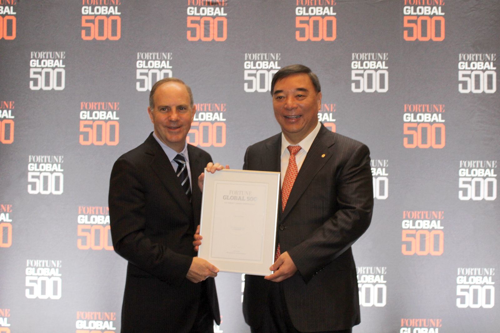 为表彰2012年全球500强中国上榜企业在世界市场中所取得的不凡商业成就,2012年9月19日晚,《财富》杂志在北京瑞吉酒店举行“2012年《财富》全球500强中国上榜企业庆祝晚宴”。宋志平董事长应邀出席,《财富》杂志总编苏安迪颁发上榜证书。