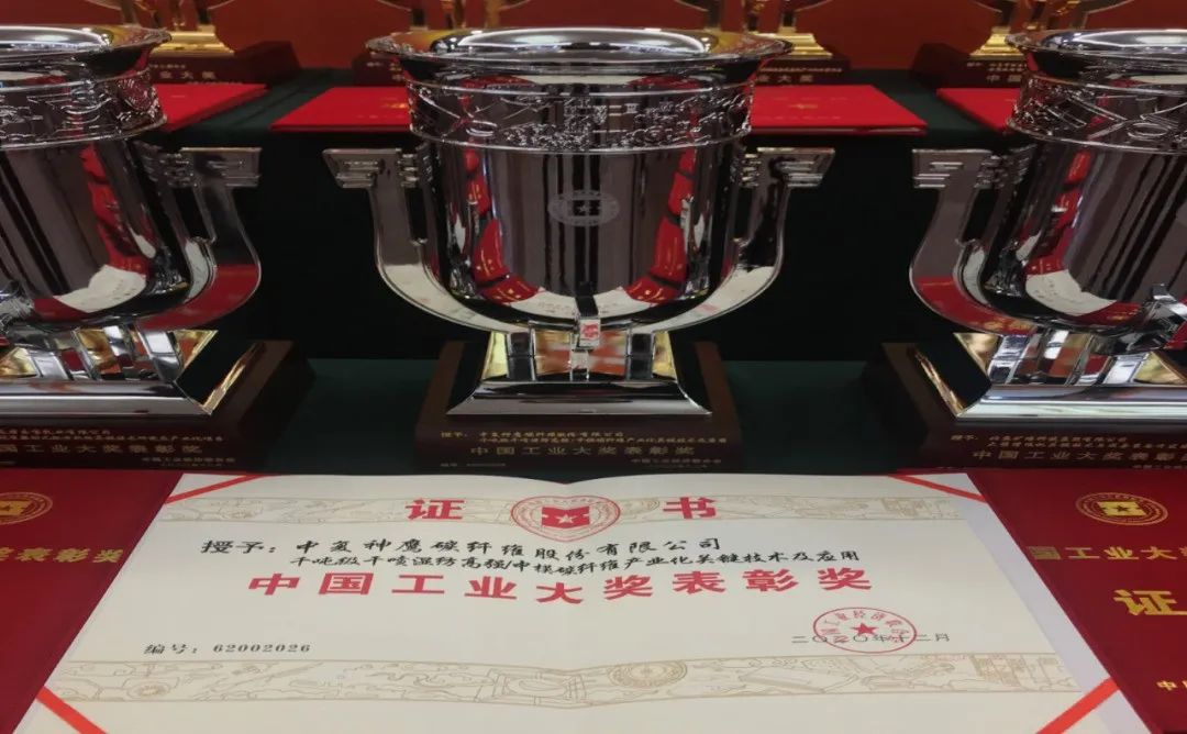 中复神鹰的“千吨级干喷湿纺高强/中模碳纤维产业化关键技术及应用”项目是继荣获2017年度国家科技进步一等奖之后,获得又一项国家大奖。中复神鹰在国内率先实现了干喷湿纺的关键技术突破和核心装备自主化,建成了首条千吨级干喷湿纺碳纤维生产线,成为世界上第三家、国内第一家掌握干喷湿纺碳纤维产业化技术的企业。打破了国内高性能碳纤维被进口产品垄断的市场格局,产品广泛应用于压力容器、碳碳复合材料、风电叶片等高端领域和新兴领域,带动了国内碳纤维复合材料产业的快速发展。