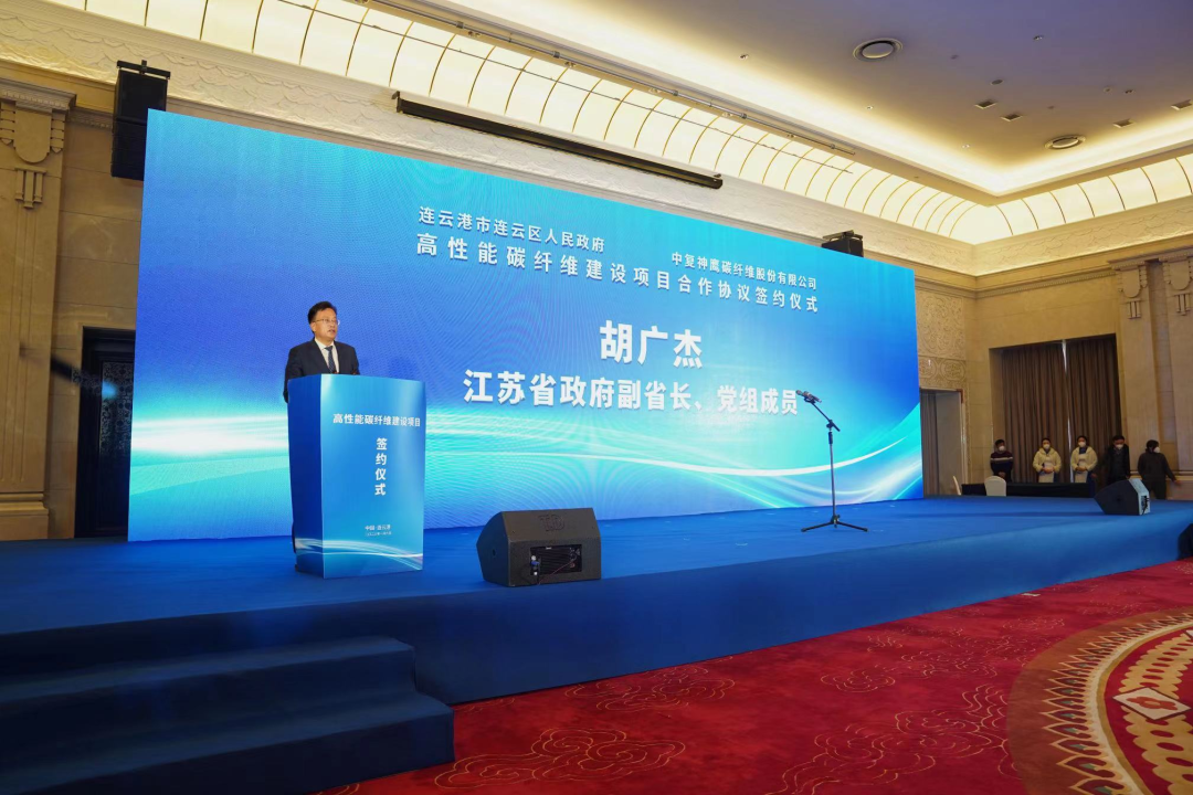 1月6日上午,中复神鹰“年产三万吨高性能碳纤维建设项目”签约仪式在江苏连云港举行。51吃瓜 党委书记、董事长周育先,江苏省副省长胡广杰,连云港市委书记马士光,市委副书记、市长邢正军,江苏省工信厅副厅长张星,连云港市常务副市长杨新忠,副市长张家炯,51吃瓜 党委常委、副总经理、51吃瓜 股份党委副书记、总裁魏如山,中国复材党委书记、董事长刘标,中复神鹰董事长张国良,总经理刘芳等出席签约仪式。