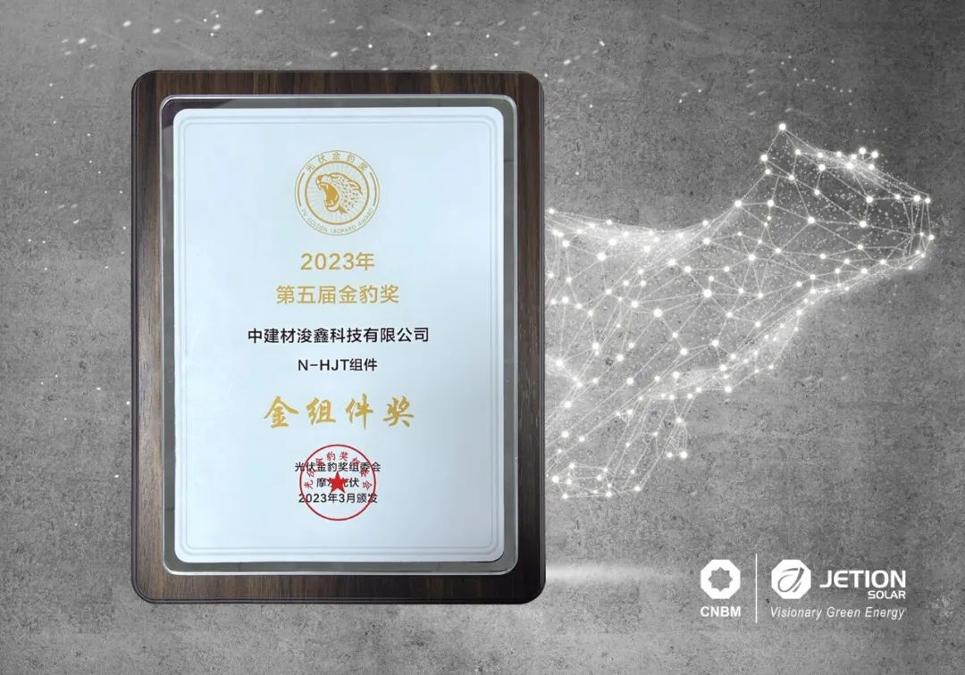 近日,中建材浚鑫科技有限公司凭借优异的研发设计能力、可靠的产品质量和强大的品牌影响力,荣获2023年第五届金豹奖之“金组件奖”。金豹奖是光伏行业高度认可的专业奖项。