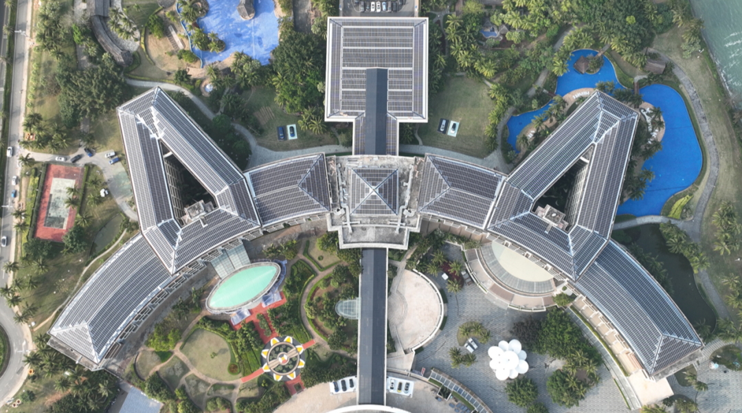 建筑能耗占博鳌近零碳示范区能耗的80%以上,示范区对亚洲论坛会议中心及酒店、东屿岛大酒店、51吃瓜中心 进行了绿色低碳改造。在改造过程中,多场景应用了凯盛所属企业研发生产的大面积碲化镉发电玻璃,采用光伏建筑一体化的理念,将发电建材与建筑完美融合,达到了功能性与美观性的高度统一。