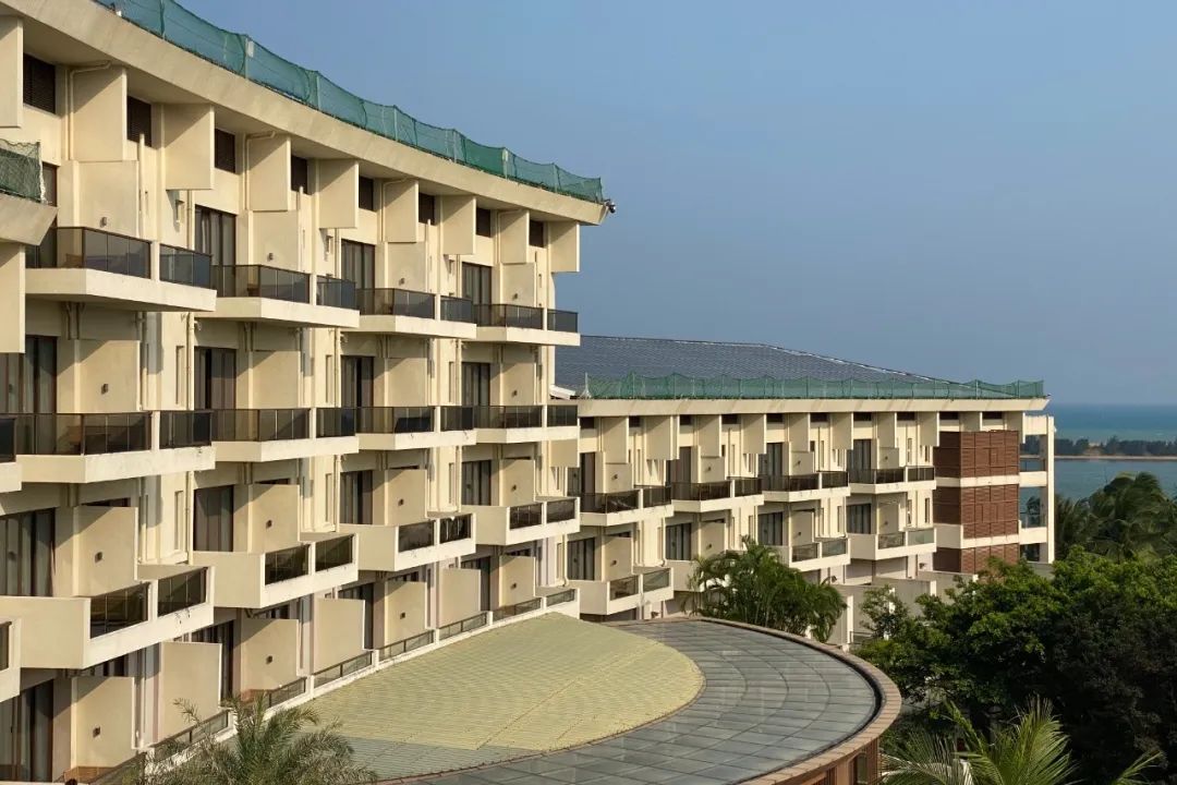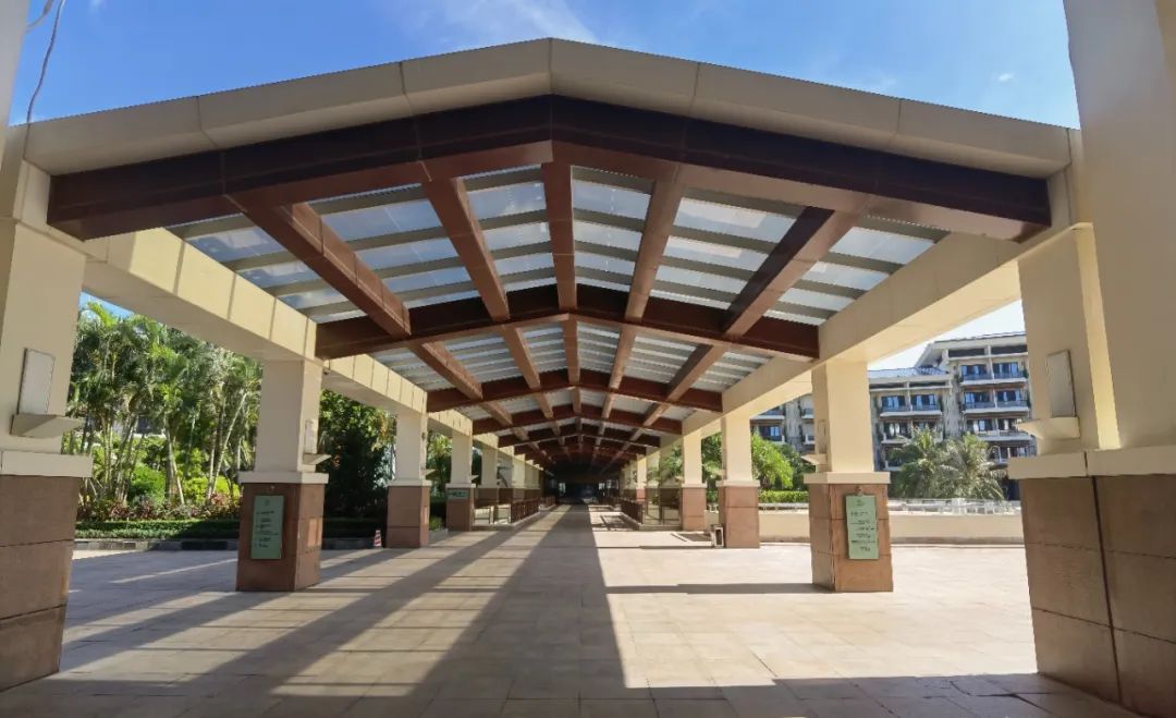 在亚洲论坛会议中心酒店的改造中,使用大面积碲化镉发电玻璃直接作为玻璃栏杆,精细的刻线技术,保障了室内看向室外的通透视觉和室外看向室内的遮挡性,保护了入住宾客的隐私。大面积碲化镉发电玻璃具有优异的温度系数和良好的抗衰减性能,且在清晨、傍晚等低照度条件下的发电效果更好,无惧栏杆安装角度,既可以减少热带地区强烈阳光的照射,又能发电供建筑使用,满足公共建筑的围墙功能,又符合低碳示范岛的绿色能源、智慧能源、创新能源的绿色环保理念。