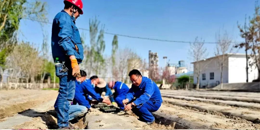 叶城天山组织领导班子和广大员工一起在厂区空闲地种植各类绿色健康蔬菜,打造水泥企业“绿色生态园”。