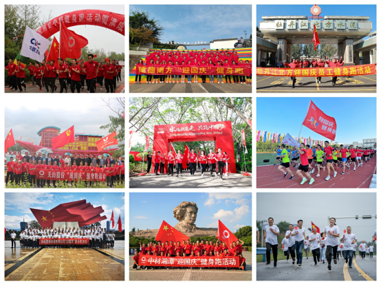 凯盛股份举办环湖健步走活动,耀华集团、晶华玻璃、成都中建材、成都中光电、濮阳光材组织健身跑活动,蚌埠院举办环山健步走活动,中联玻璃举办“欢乐国庆健身跑 奋进腾飞新中联”健步跑比赛,佳星玻璃组织“迎国庆 百人健身跑”活动,智能自动化院举办“礼赞华诞 砥砺前行”活动,凯盛重工举办“天行健”跑步比赛。