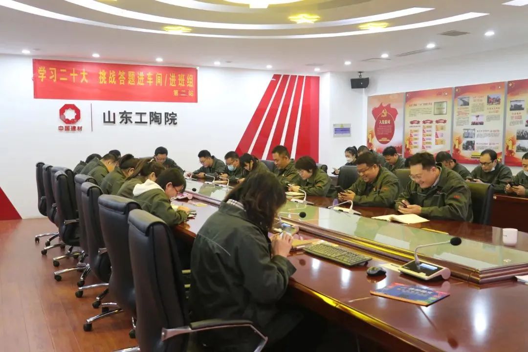 山东工陶院党委组织开展“学习二十大,挑战答题进车间/进班组”活动,来自8个党支部共200余名党员和团员参加本次活动。此次借知识竞赛契机,以赛促学、以学促行、比学赶超,推动全体干部职工深刻领会党的二十大提出的新思想、新论断、新目标、新举措、新要求,以更加昂扬的姿态奋进新征程、建功新时代。