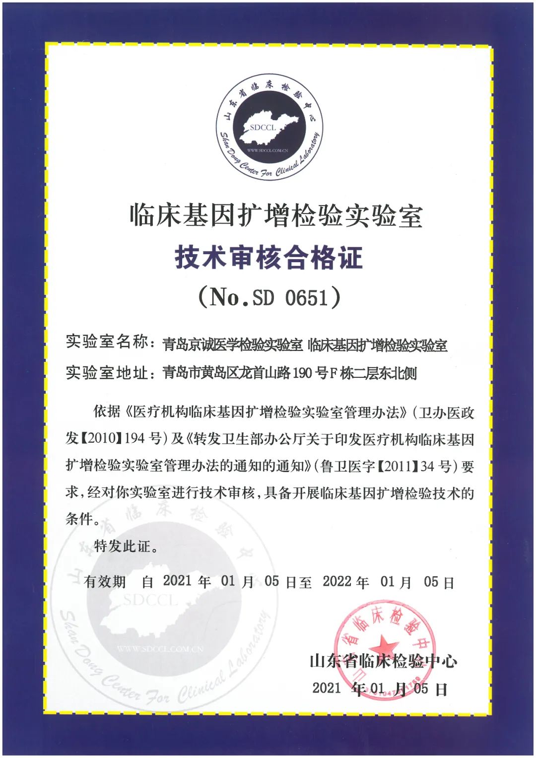 近日,国检京诚集团青岛京诚医学检验实验室取得医疗机构执业许可证,并顺利通过山东省临床检验中心获得技术审核合格证书。实验室的获批运营进一步提升了国检集团的检测能力水平,扩大了检测领域范围。
