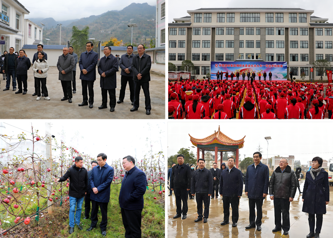 周育先一行先后调研了永善县红光九年一贯制学校、黄金村、黄金小学和昭阳区守望乡卡子村、永丰镇海升苹果产业基地,并出席了永善县红光九年一贯制学校校服捐赠仪式和昭阳区卡子村党建书屋挂牌仪式。