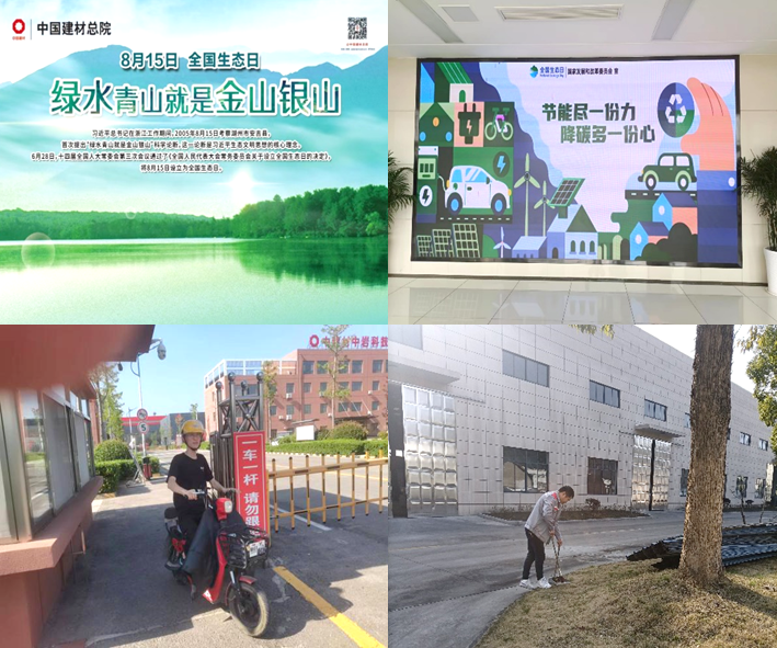总院发布全国生态日专属海报,宣传贯彻习近平生态文明思想。瑞泰马钢利用大屏进行宣传的同时,号召公司各部门进行整理整顿,清洁清扫活动,以行动赋予“全国生态日”实际意义。安徽瑞泰倡导员工绿色出行,以减少汽车尾气排放对环境造成的污染,并组织员工参加厂区环境清理及公共区域清理工作。中岩科技带领山东、湖南分子公司开展“全国生态日”宣传系列活动。钟表所为加强生态宣传力度,通过电子屏发送宣传海报,向员工进行生态环境保护宣传。 中国复材在微信公众号上开展“全国生态日”标识学习活动,组织广大员工学习全国生态日相关知识。