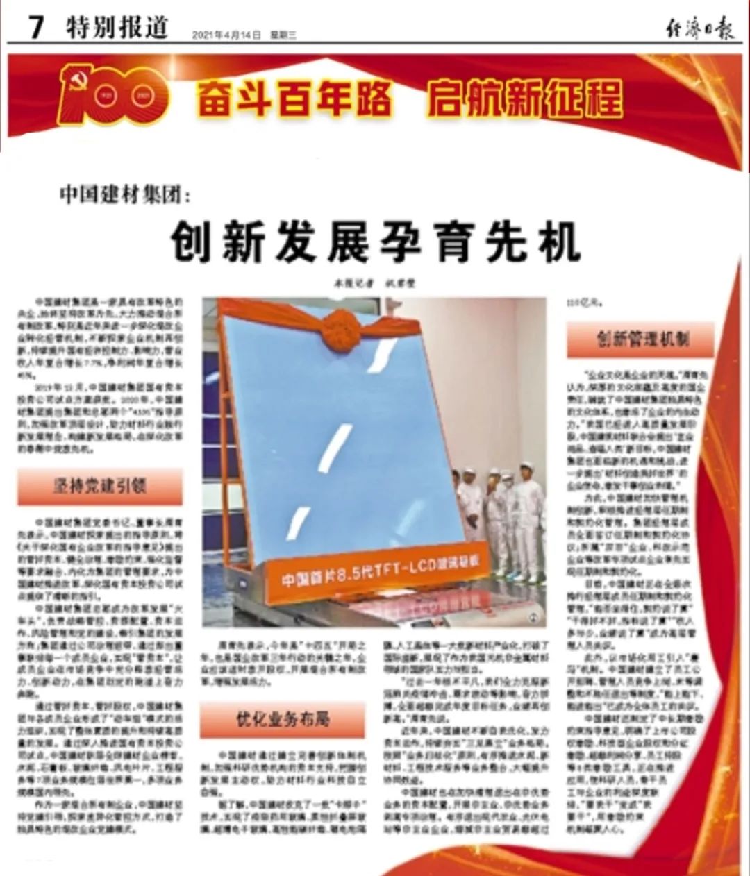 《经济日报》特设“奋斗百年路 启航新征程”栏目
