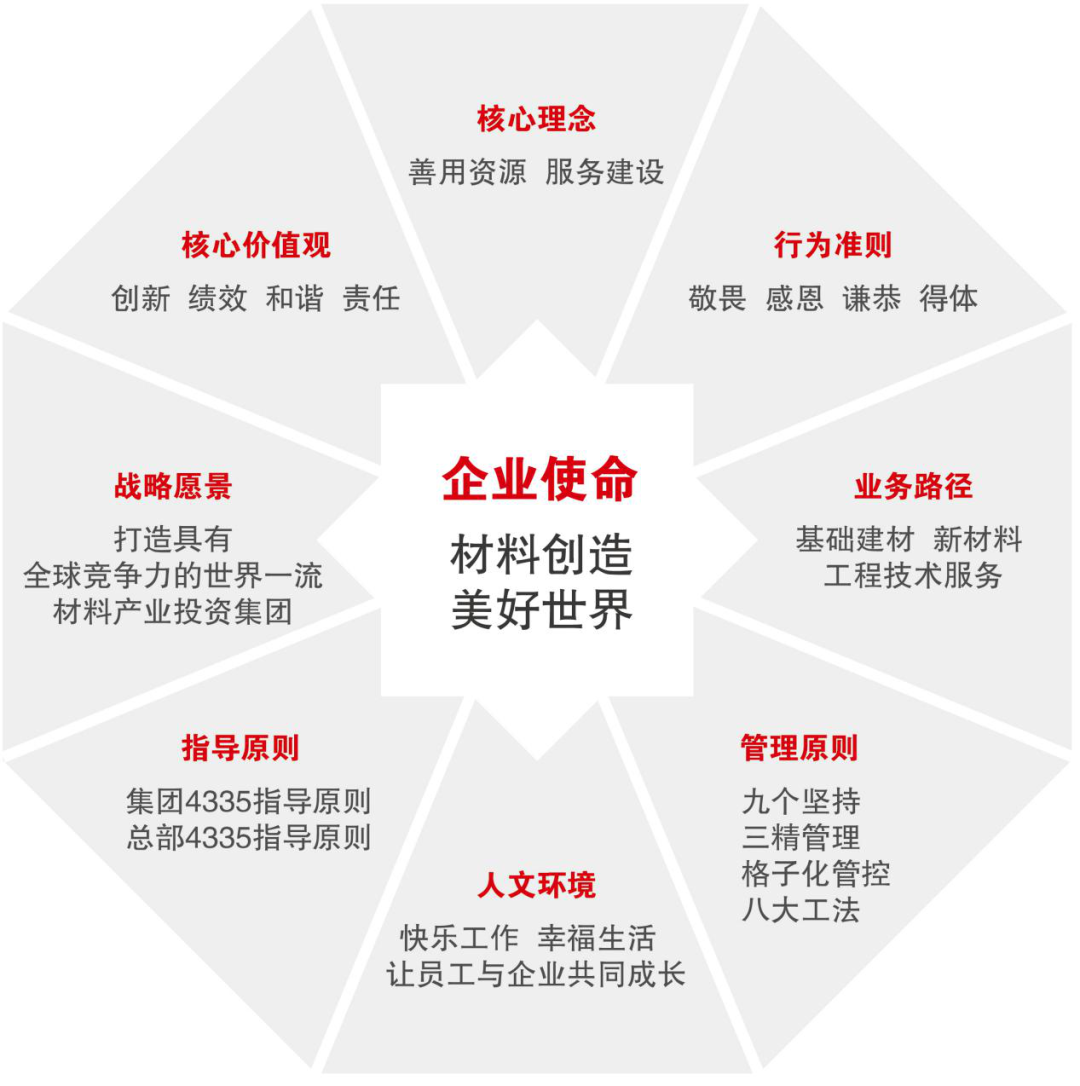 “3”,实现三个转变,即管企业向管资本转变、建筑材料向综合材料转变、本土市场向全球布局转变;