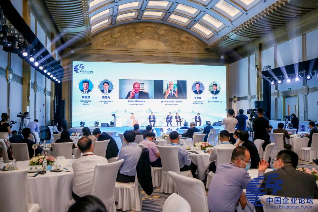 在中外企业家对话会上,谭作钧,克劳斯?施瓦布发表致辞,凌文作总结发言,周育先,国家能源集团总经理刘国跃,施耐德电气CEO兼董事长赵国华(Jean-Pascal Tricoire),荷兰皇家飞利浦监事会主席、荷兰帝斯曼集团荣誉主席菲克·谢白曼(Feike Sijbesma),北京物美集团创始人、多点Dmall董事长张文中,北京大学光华管理学院院长刘俏等围绕“对标世界一流管理提升”这一主题,分享了数字化、绿色化转型等创新实践和精彩观点,为推动全球企业变革、构建人类命运共同体贡献智慧,中央广播电视总台田薇主持会议。