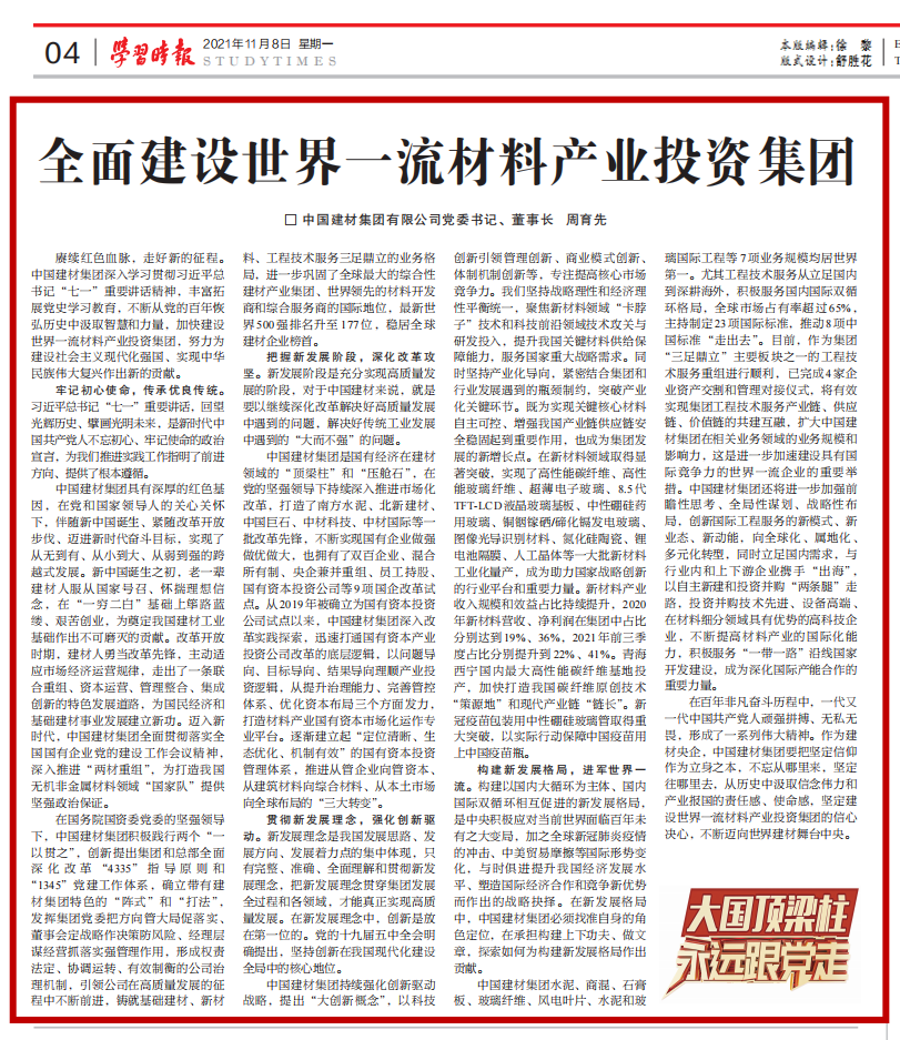 《学习时报》刊发周育先署名文章:全面建设世界一流材料产业投资集团