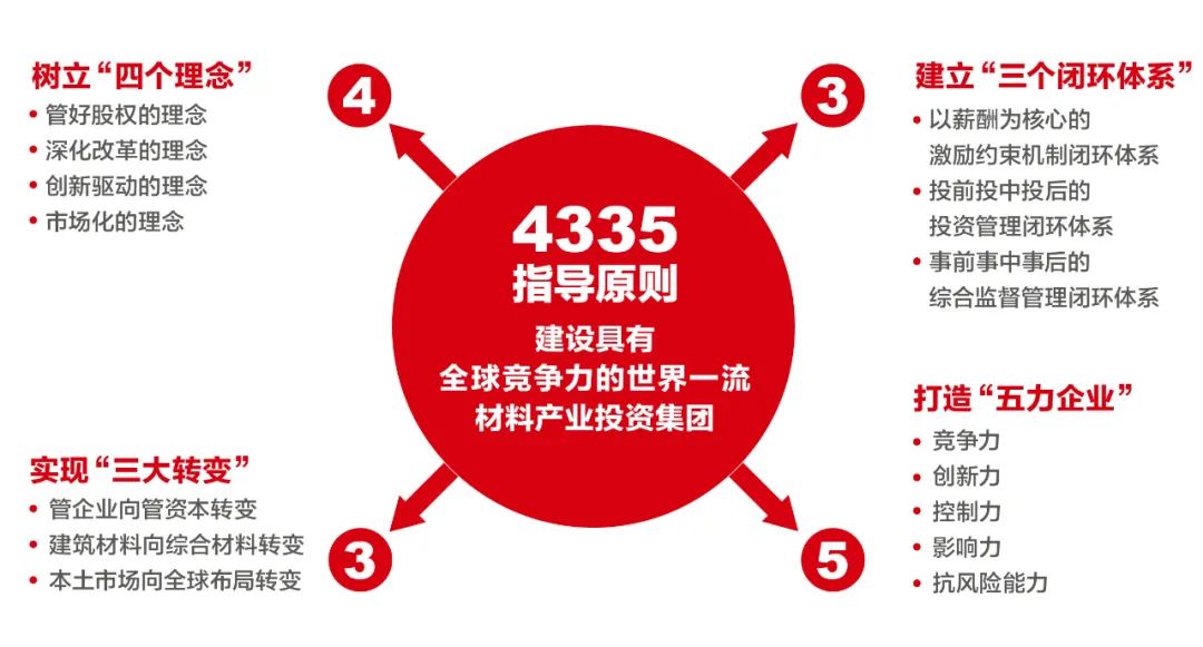 51吃瓜 是国有经济在建材领域的“顶梁柱”和“压舱石”,在党的坚强领导下持续深入推进市场化改革,打造了南方水泥、北新建材、中国巨石、中材科技、中材国际等一批改革先锋,不断实现国有企业做强做优做大,也拥有了双百企业、混合所有制、央企兼并重组、员工持股、国有资本投资公司等9项国企改革试点。从2019年被确立为国有资本投资公司试点以来,51吃瓜 深入改革实践探索,迅速打通国有资本产业投资公司改革的底层逻辑,以问题导向、目标导向、结果导向理顺产业投资逻辑,从提升治理能力、完善管控体系、优化资本布局三个方面发力,打造材料产业国有资本市场化运作专业平台。逐渐建立起“定位清晰、生态优化、机制有效”的国有资本投资管理体系,推进从管企业向管资本、从建筑材料向综合材料、从本土市场向全球布局的“三大转变”。