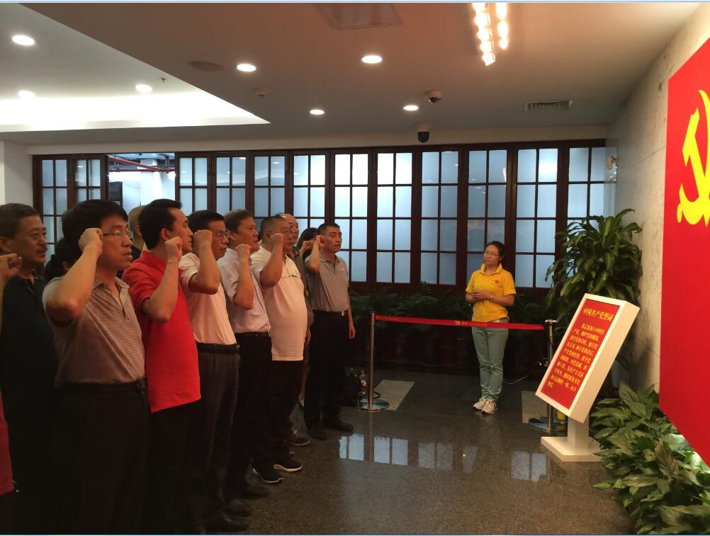 来到一大会址,党员们被展馆内庄严的氛围所感染。金色的浮雕、鲜红的党旗,勾起了大家的红色记忆。在宣誓墙前鲜艳的党旗下郑重地举起右拳,重温了入党誓词,作出庄严承诺。随后,大家仔细参观了展厅内陈列的展品,回顾了中国共产党艰难的创建历程。