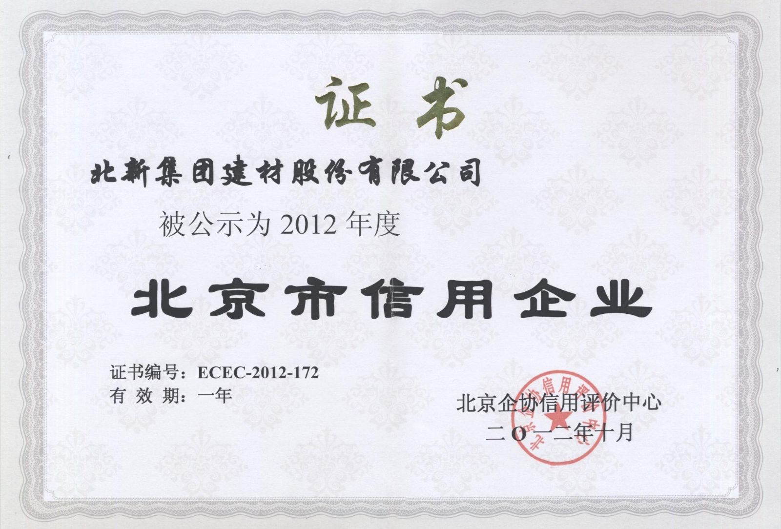 2012年10月,北新建材被北京企协信用协会评价中心评为“2012年度北京市信用企业”。