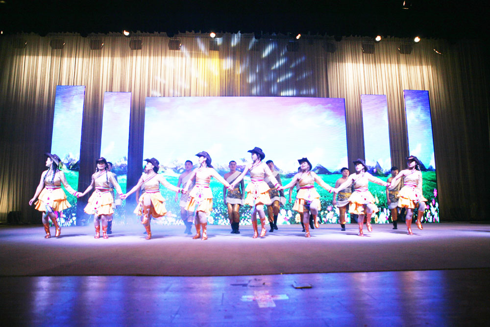 晚会在企业宣传片《泰山玻纤 万千一线》中拉开序幕。紧接着开场舞《天路》以绚丽的民族服饰和极具川藏特色的少数民族舞蹈,开启了对第一篇章《艰苦创业》之路的缅怀。纪录片《梦想从这里起航》以泰玻发展史为主线,由三位讲述人娓娓道来,声情并茂。紧跟着一首《与往事干杯》打翻回忆,怀旧的情绪荡漾在每一位老员工脸上。邹城公司的小品《热情推销》则紧抓“二胎”和“保险”两个时尚关键词,表达了对现代生活的反思。