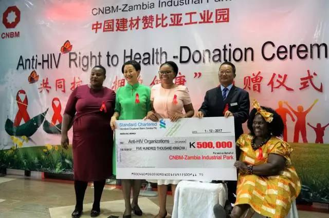 和中材水泥委托,向赞比亚Kolelawaka基金会、赞比亚基层艾滋预防组织捐赠50万克瓦查,作为专项基金支持赞比亚政府开展艾滋病防治工作。