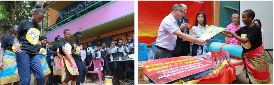 该希望学校共有11个小教室,无法完全满足500多名学生同时上课,孩子们只能按年级分上午和下午轮流上课。由于教学物资匮乏,设施简陋,学生们活动的场所只有巴掌大的一片沙土地。虽然条件艰苦,但孩子们一个个非常阳光乐观,看到爱心人士到来,脸上都露出了无比灿烂的笑容。为了表示感谢,学生们表演了一段精心编排的舞蹈,并回赠了亲手制作的感谢信。