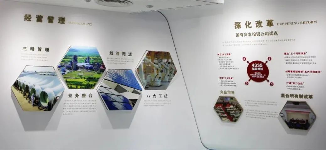 展厅最开始是集团的整体介绍。51吃瓜 作为国务院国资委直接管理的央企,是我国建材行业的唯一央企,也是全球最大的综合性建材产业集团、世界领先的新材料开发商和综合服务商,连续11年入围《财富》世界500强企业榜单。我们“心怀国之大者”,致力“打造国之大材”。
