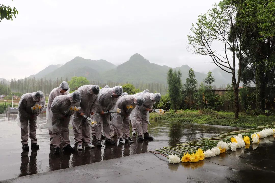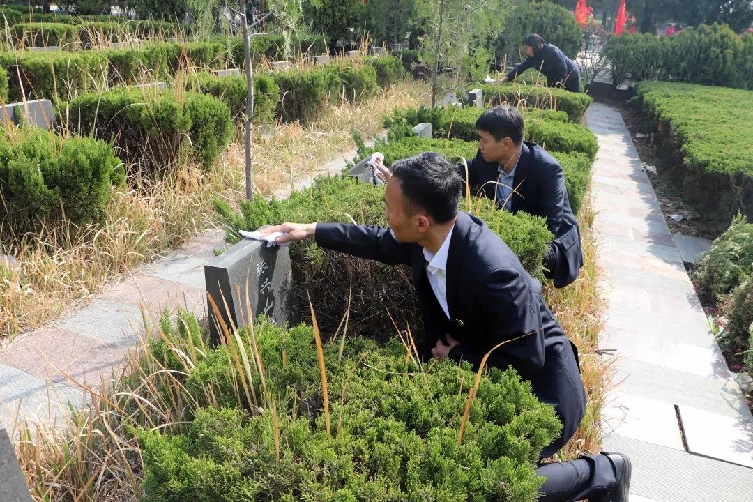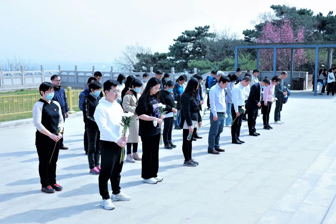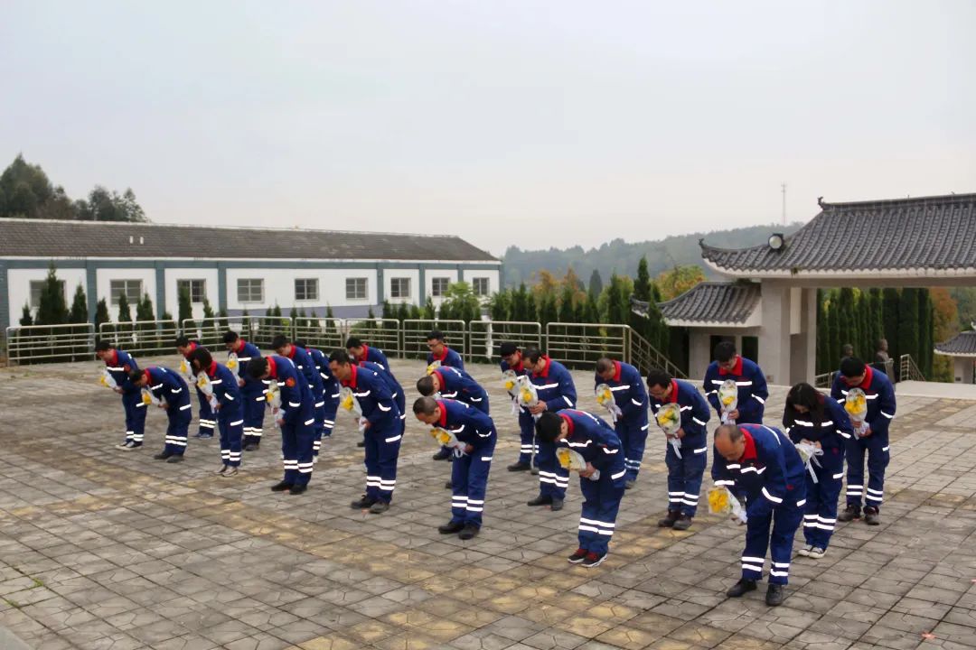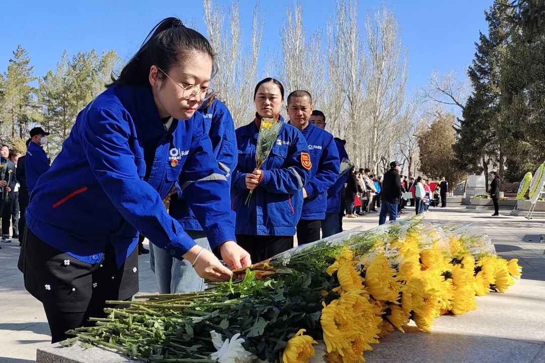 天山筑友公司组织干部职工开展祭扫活动,全体人员庄严肃穆列队于烈士墓碑前,向长眠于此的革命烈士集体默哀,三鞠躬,并依次献花,缅怀先烈、寄托哀思。