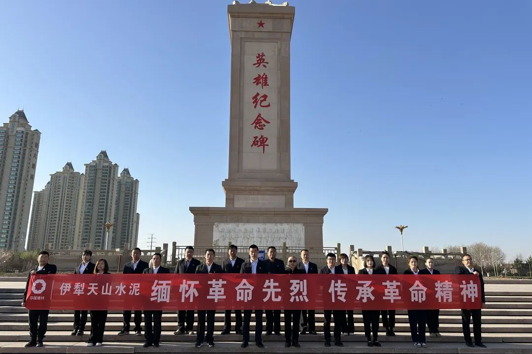 伊犁天山水泥组织全体党员在伊宁市塔什科瑞克乡英雄纪念碑广场开展祭扫活动,大家向革命烈士纪念碑默哀并三鞠躬、缓步瞻仰英雄纪念碑、敬献花篮,向革命先辈致以最崇高的敬意。