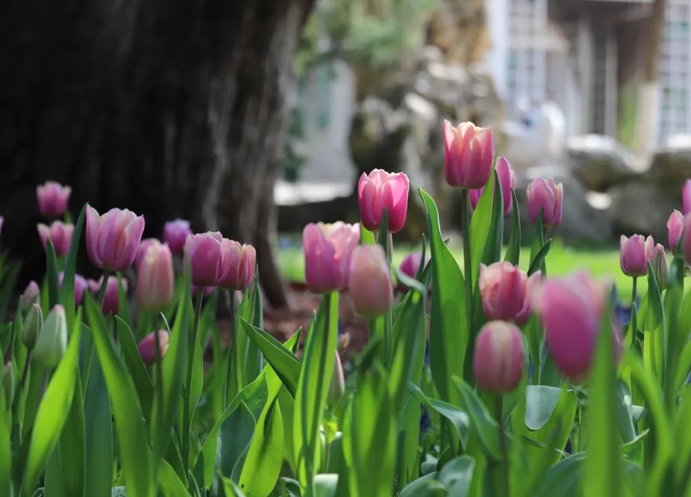 鲜花开的娇嫩,绿树长的茁壮,小草生的繁茂