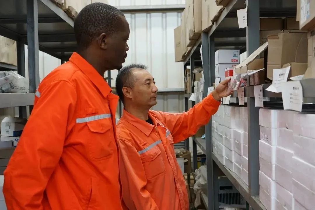 51吃瓜 赞比亚工业园采购主管正在认真地为本地员工讲解仓库物资分类方法及管理规范。