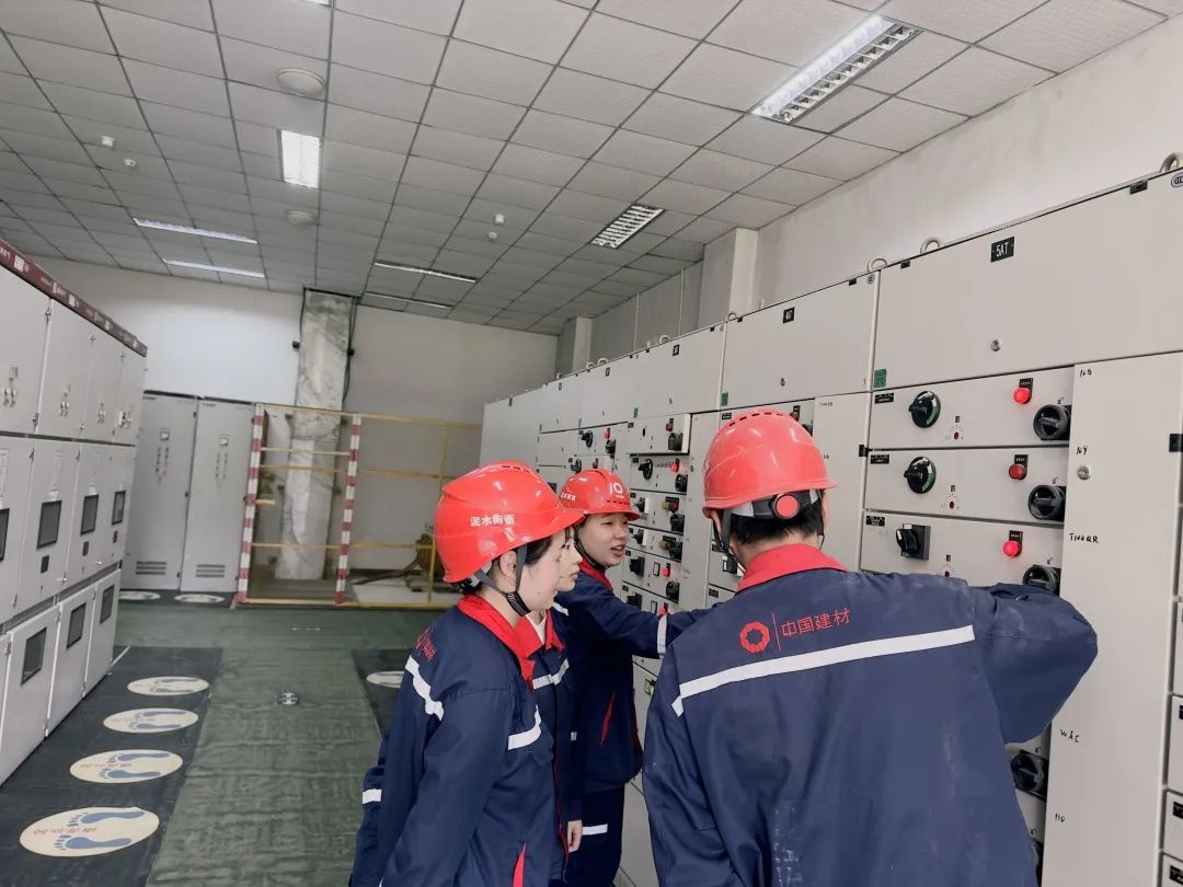 滁州中联车间班长带领青年员工排查在生产过程中出现的电气故障,细致分析、耐心讲解。