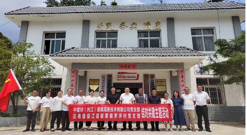 在云南省绥江县,中建材(内江)玻璃高新技术有限公司党支部组织党员到集团援建的罗坪村易迁安置点学习调研,了解乡村振兴成果并与罗坪村党支部签订结对共建协议,还向罗坪村委捐赠了党建图书、会议桌椅和电脑等办公设备。