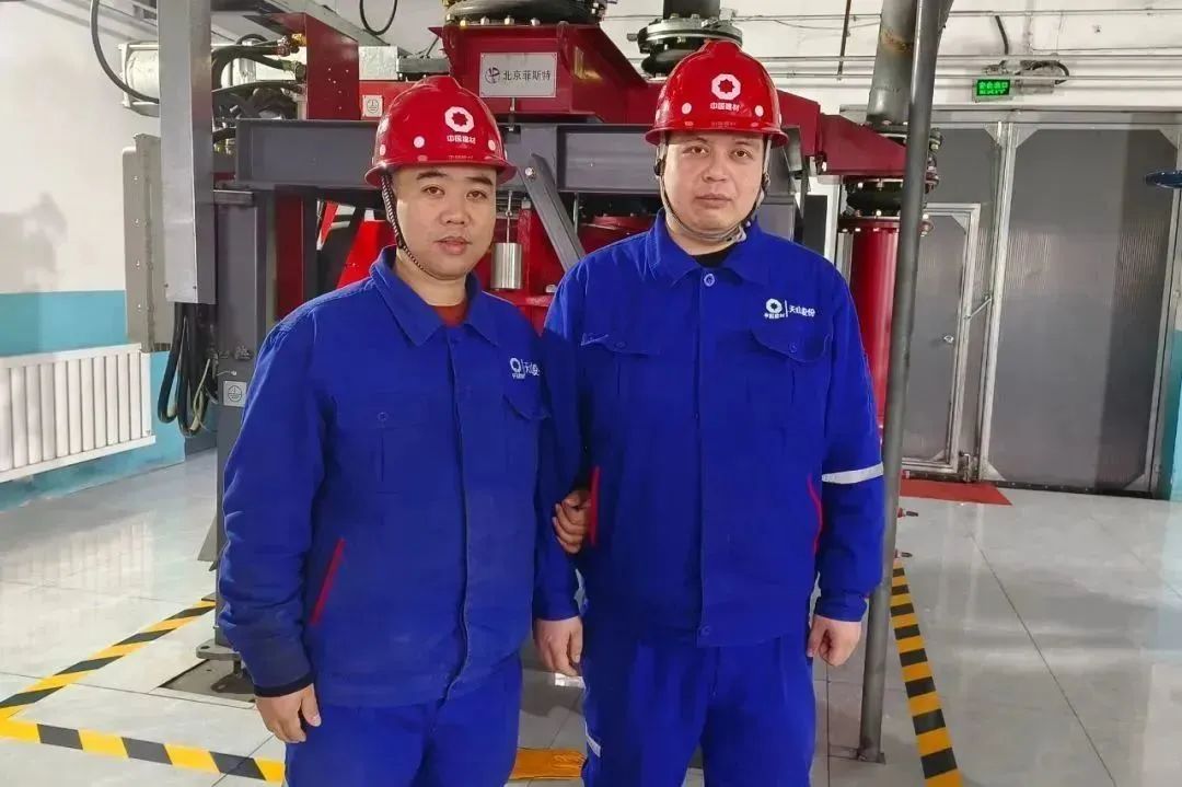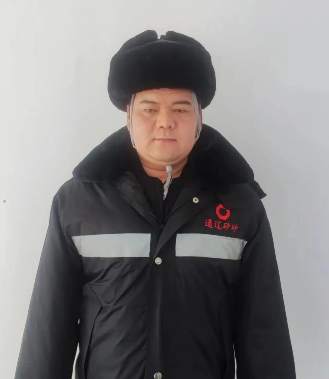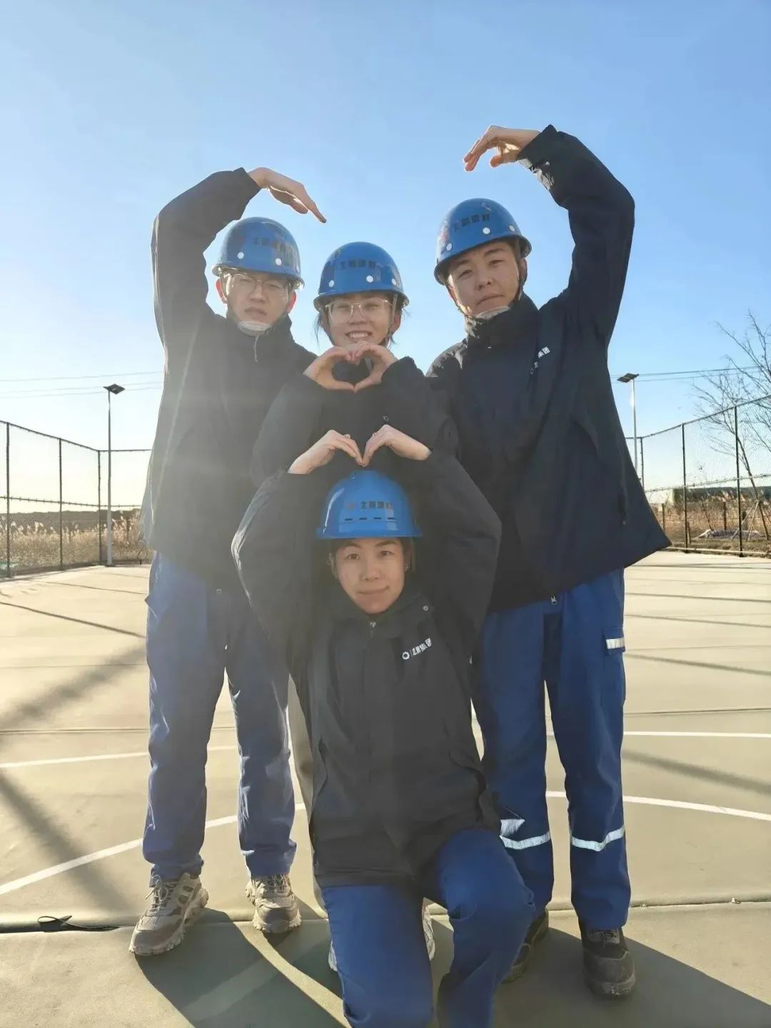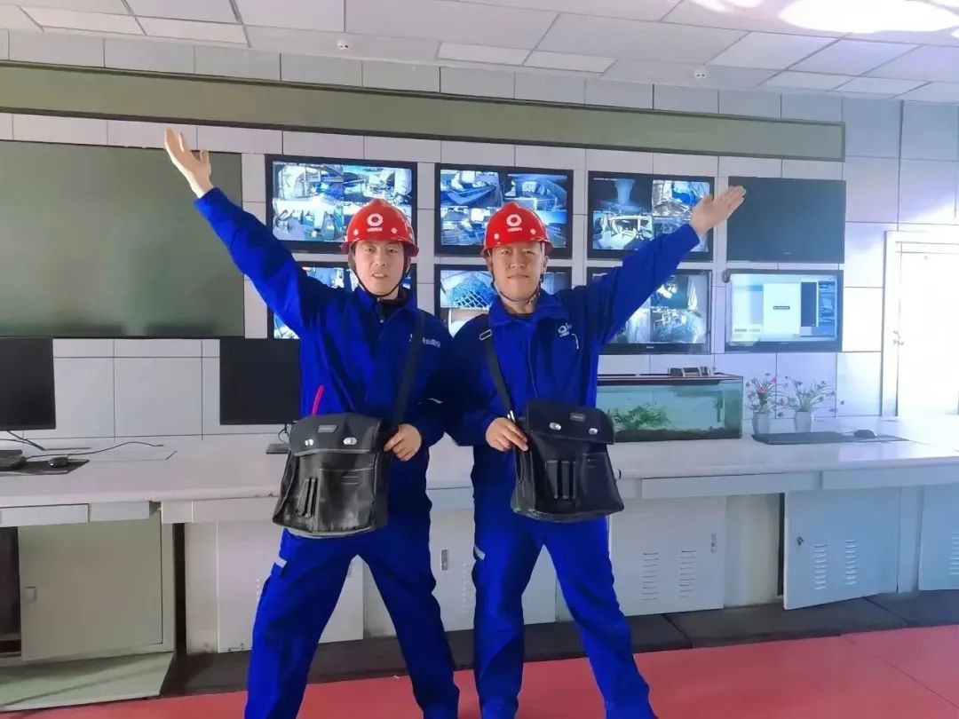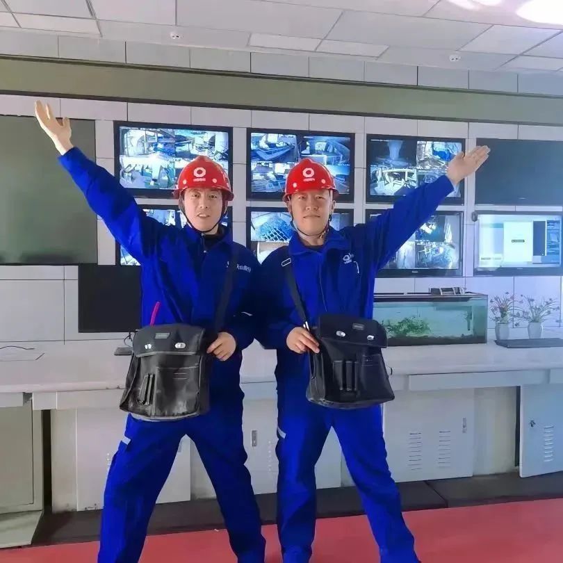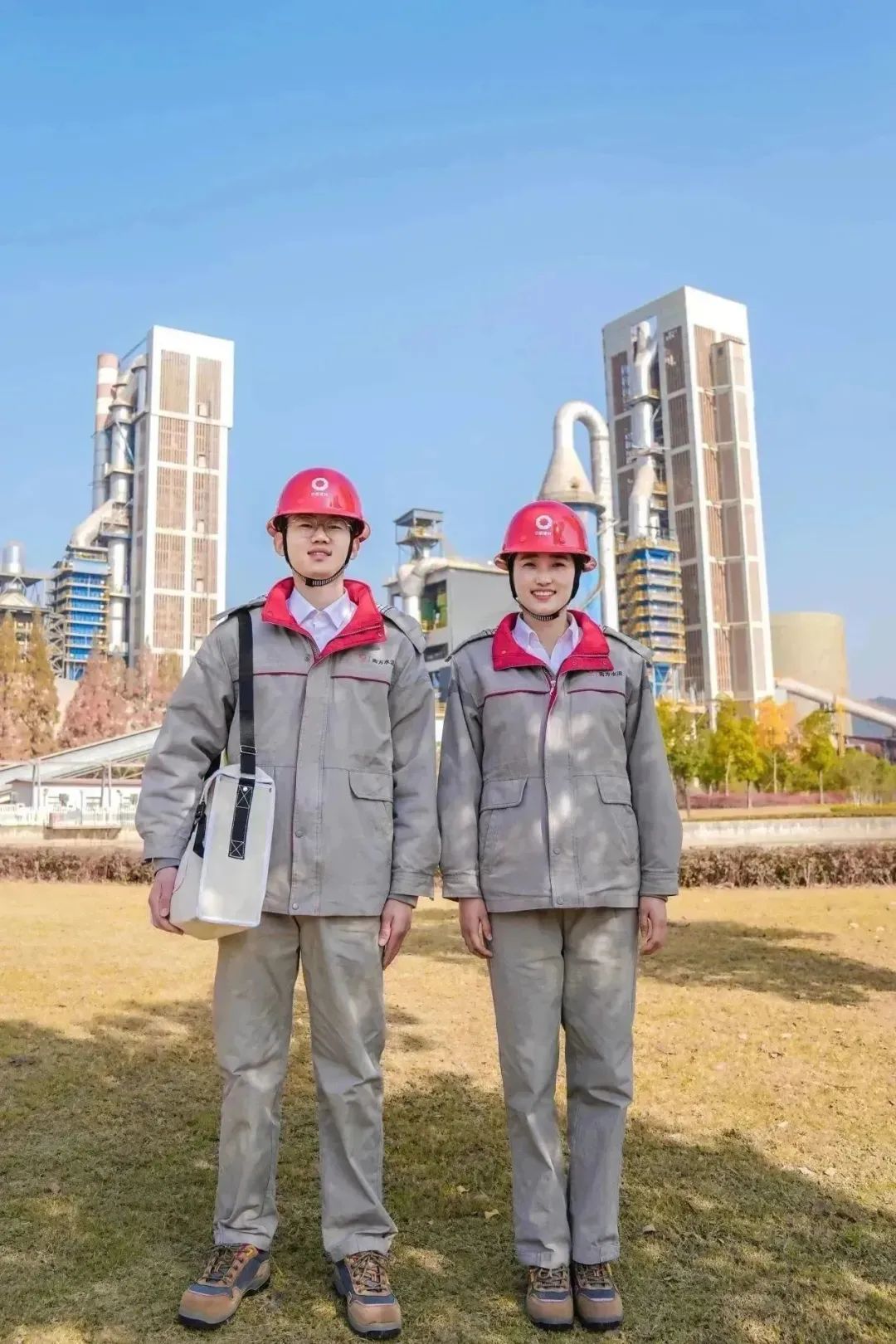 身着工作服,头戴安全帽
