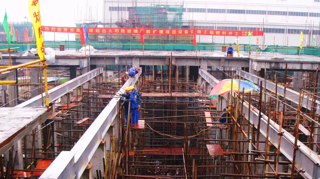国内总承包的第一条浮法玻璃生产线设备安装工程现场