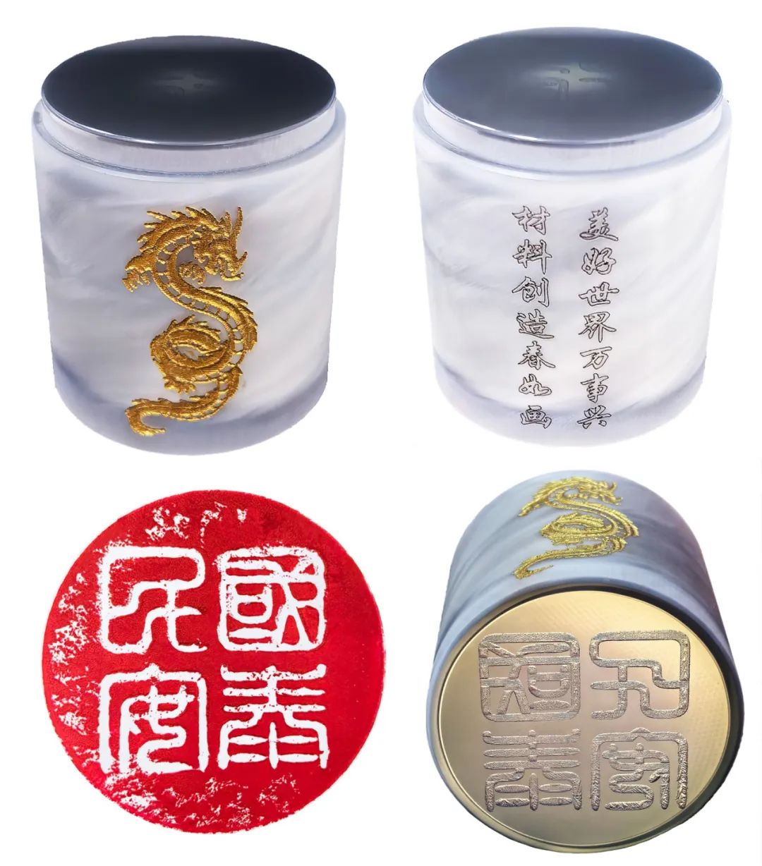 材料:该枚印章以泰山玻纤玻璃纤维和环氧树脂为材质,将现代科技与传统文化相融合,采用真空灌注之工艺,精工打磨,制成此印章。表面光润,色泽温和,晶莹剔透,宛若玉石,同时,结构细密,不易破损。