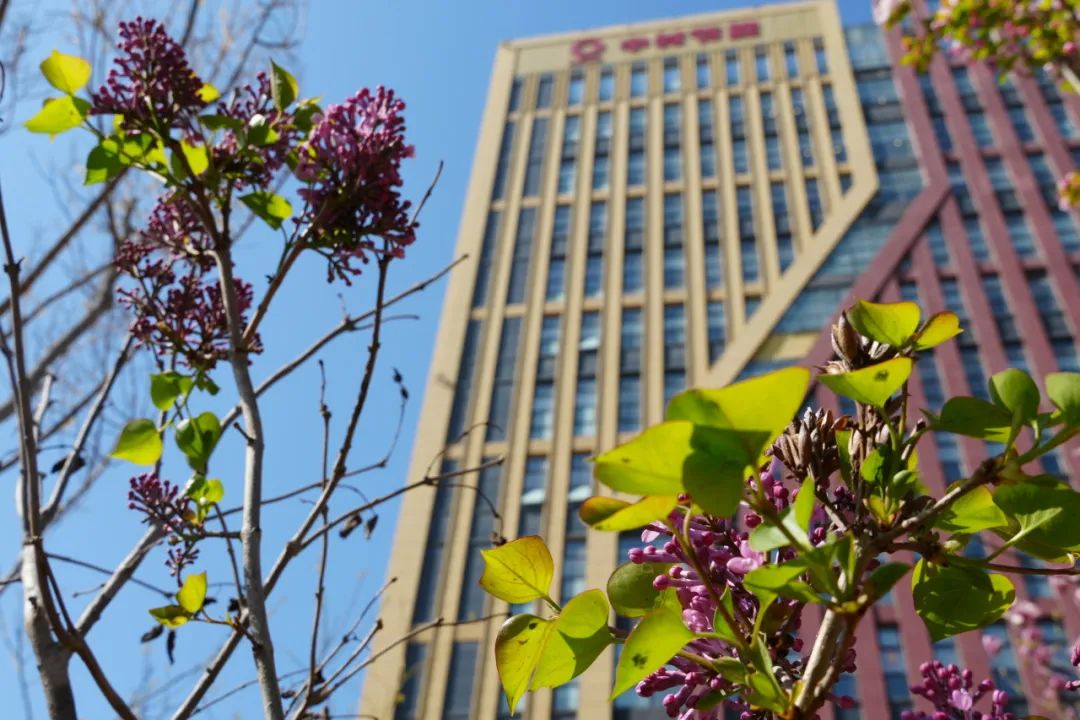 中材节能鸟语花香,丁香竞相绽放。