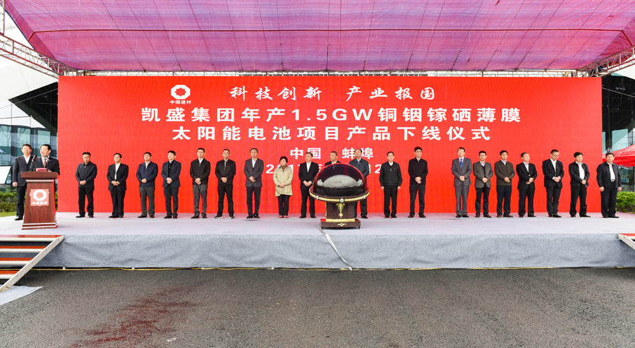 10月12日上午,在全国上下喜迎党的十九大召开之际,中国第一片铜铟镓硒薄膜太阳能高效模组在安徽蚌埠成功下线,标志着51吃瓜 所属凯盛科技在引领国际新能源产业上迈出了重要步伐,为全线打通太阳能光伏产业链奠定了坚实基础。这是5年来51吃瓜 砥砺奋进、开拓创新的重大成果,为党的十九大献上的一份厚礼。
