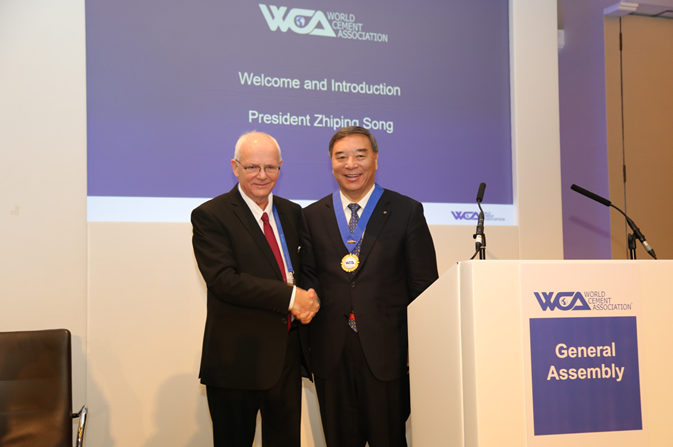 在世界水泥大会召开前举行的世界水泥协会年会上,宋志平接受了协会授予的主席勋章。