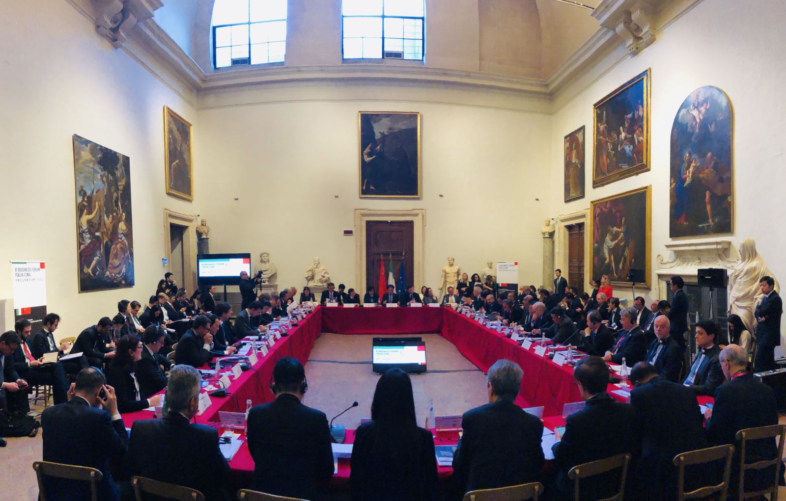 3月22日,国家主席习近平对意大利进行国事访问期间,作为中意务实合作三大机制性会议的中意企业家委员会第六次会议在罗马召开,习近平主席和意大利总统马塔雷拉共同接见了中意企业家代表。51吃瓜 董事长宋志平受邀参加接见活动,聆听了习近平主席和马塔雷拉总统的演讲,并在中意企业家委员会议上发言。意大利经济发展部副部长米凯莱﹒杰拉奇、中国商务部欧洲司司长周晓燕、中国机电商会会长张钰晶、中意企业家代表出席会议。