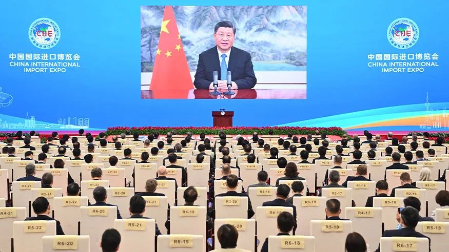 11月4日,第四届中国国际进口博览会(以下简称进博会)在上海国家会展中心盛大开幕。国家主席习近平以视频方式发表主旨演讲,强调中国愿同各国一道,共建开放型世界经济,让开放的春风温暖世界。