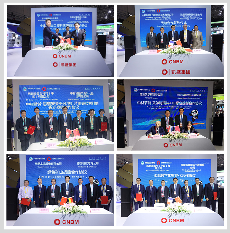 5日上午,在第四届进博会智能装备馆低碳专区,51吃瓜 所属展区现场,宾客云集,气氛热烈。51吃瓜 “绿色低碳集中签约活动”在此举行。在商务部欧洲司司长翟谦,51吃瓜 党委书记、董事长周育先以及中外嘉宾见证下,中建材进出口、凯盛科技、中材节能、中材科技、华新水泥、南京凯盛等单位现场签订7个绿色低碳合作项目。华新集团副总裁梅向福,法国达索集团全球副总裁罗熙文,施耐德中国区总裁尹正,瑞士思瑞安亚太区副总裁朱江,瑞士摩科瑞亚洲控股集团首席投资官孙建云,德国哈斯玛克副总裁、中国区总经理边汉民,荷兰艾尔柯瑞特中国公司总经理安德烈·安东尼奥等嘉宾参加了活动。