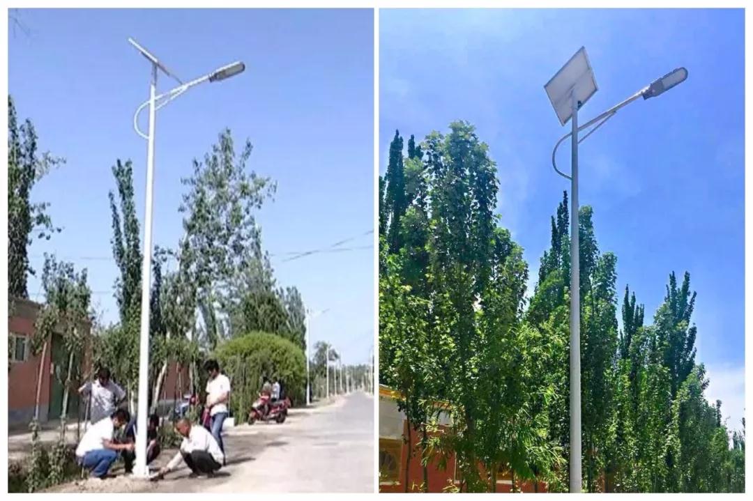 (左图为太阳能路灯调试画面;右图为投入使用的太阳能路灯)
