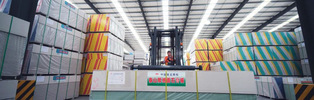 石膏板的原材料主要包括工业副产石膏和护面纸,工业副产石膏主要来自火电厂和化工厂。泰山石膏围绕火电厂和化工厂具有市场优势和原料优势进行全国布局,由于石膏板具备资源属性,既靠近原材料市场又靠近消费市场的全国布局完成后, 具备明显的成本优势和全国及时供货服务优势。张建春介绍,泰山石膏生产环节所需的多项主辅材料可自供,自有65万吨护面纸产能,可靠的原料配套能力在保证产品高品质的同时,大大降低成本提升了竞争力。泰山石膏在全国设有56家工厂,16个区域公司和16个重点城市设立营销中心,多点布局的营销网络也为建材集团石膏板业务提升区域竞争力发挥了关键作用。