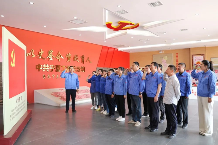 宁夏建材纪委紧密结合主题教育,深入开展纪检干部队伍教育整顿工作,组织总部及相关企业纪检干部赴中共宁夏工委旧址接受革命传统教育。纪检干部面向鲜红的党旗,整齐列队、高举右拳,重温入党誓词,强化党员意识,坚定理想信念,激发干事创业的热情。参观宁夏工委旧址后,宁夏建材纪检干部追随习近平总书记的足迹,参观了宁夏永宁县最大的“生态移民安置村”原隆村,通过走访农业科技大棚、闽宁农业创客空间,深切感受新时代中国从打赢脱贫攻坚战到全面推进乡村振兴,为乡民带来的幸福时光与美好生活。