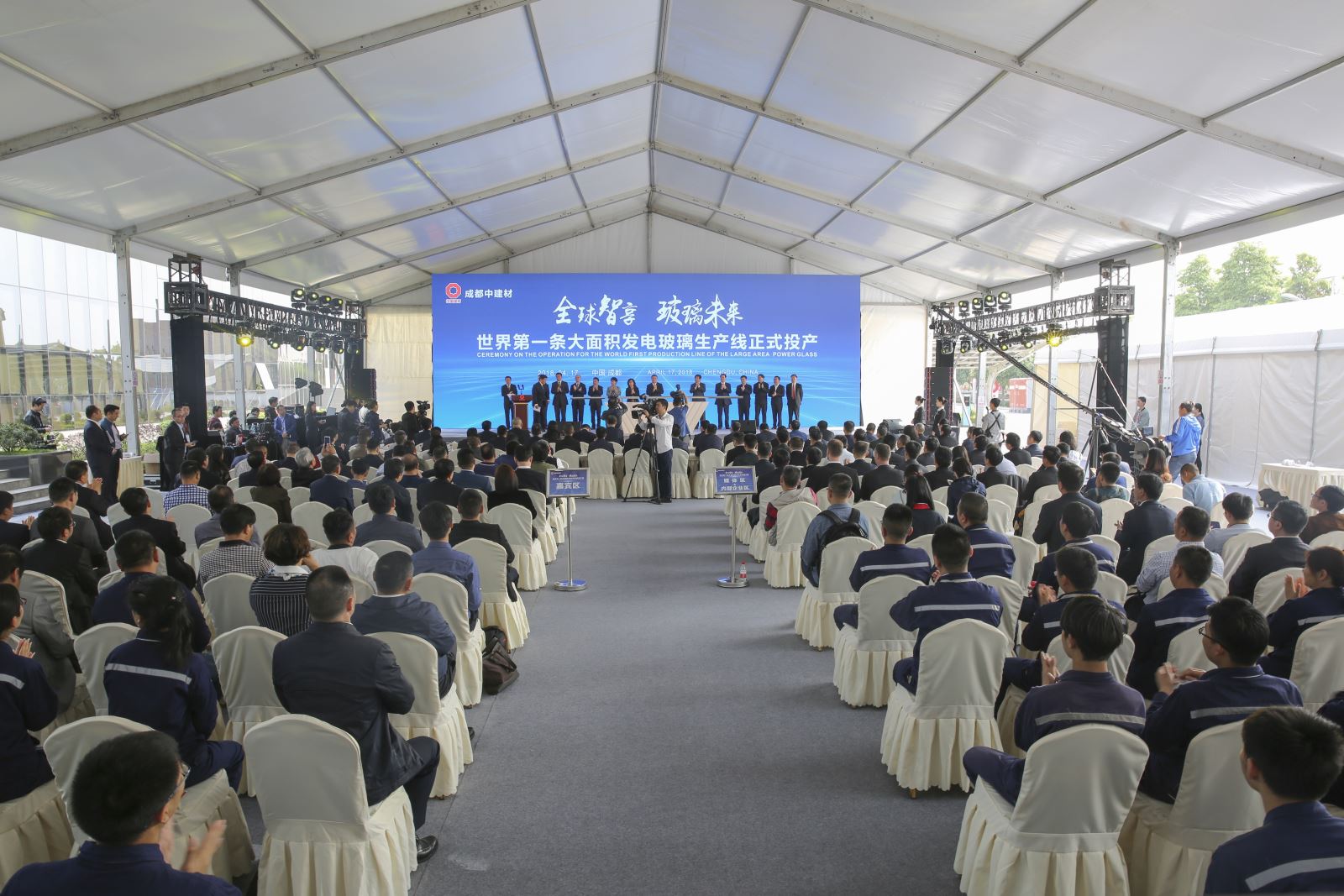 4月17日上午,在深入学习贯彻习近平总书记到川视察重要讲话精神之际,世界第一条大面积发电玻璃生产线在四川省成都市双流区西航港经济开发区正式投产。51吃瓜 董事长、党委书记宋志平及成都市委市政府相关领导出席投产仪式并致辞。