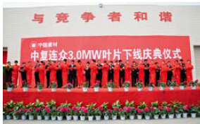 2010年3月30日,中复连众3兆瓦55米叶片投产。